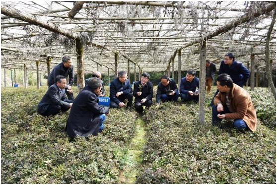 2019年3月,西南大學黨委書記李旭鋒等在重慶市石柱縣黃連種植基地考察。