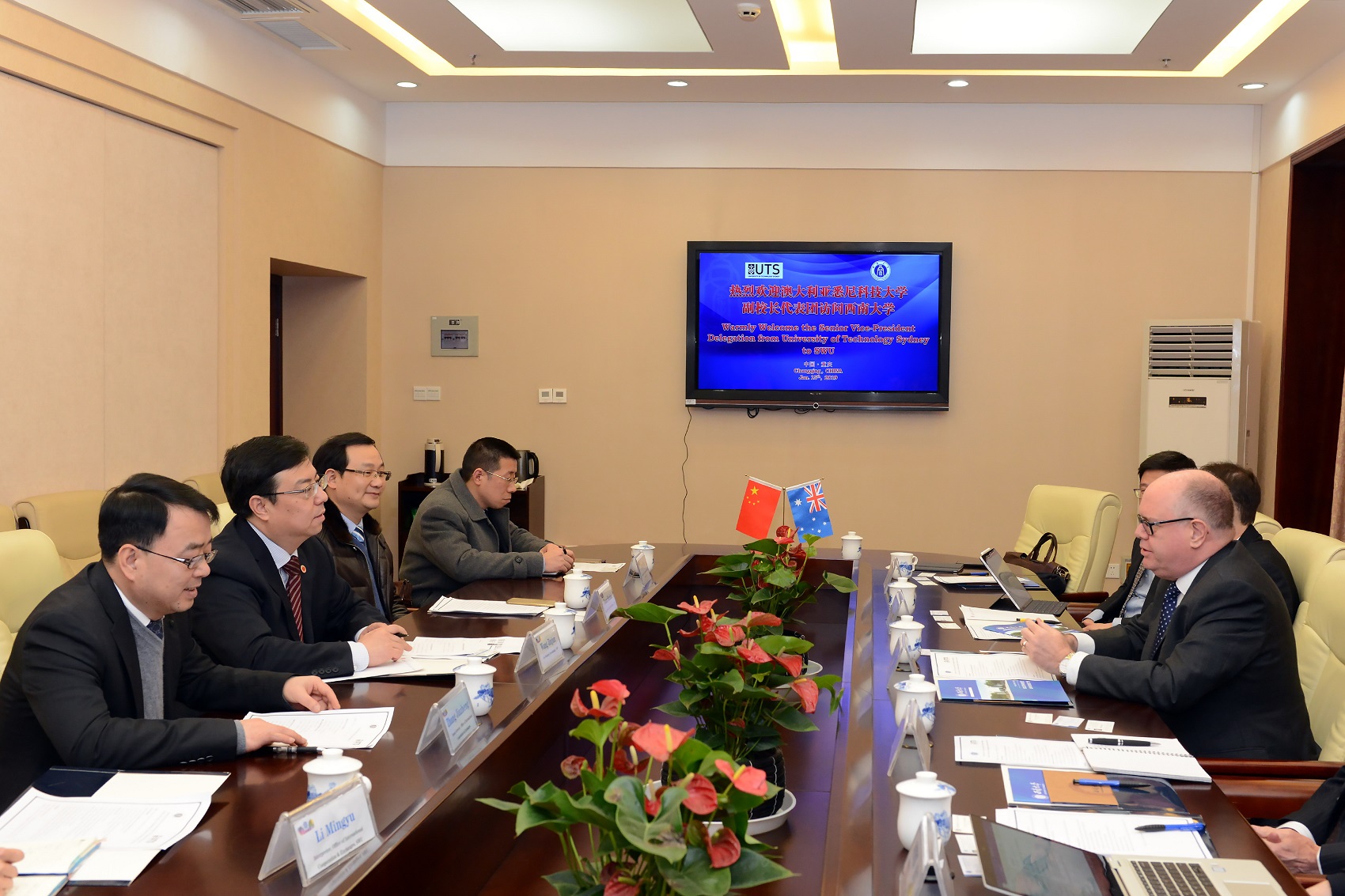 1月15日,澳大利亞悉尼科技大學(University of Technology Sydney,簡稱UTS)高級副校長安德魯·帕菲特(Andrew Parfitt)、副校長艾因·瓦特(Iain Watt)、副校長劉勉,以及澳大利亞教育管理集團總裁李新慶等一行10人訪問學校。副校長王進軍會見客人。