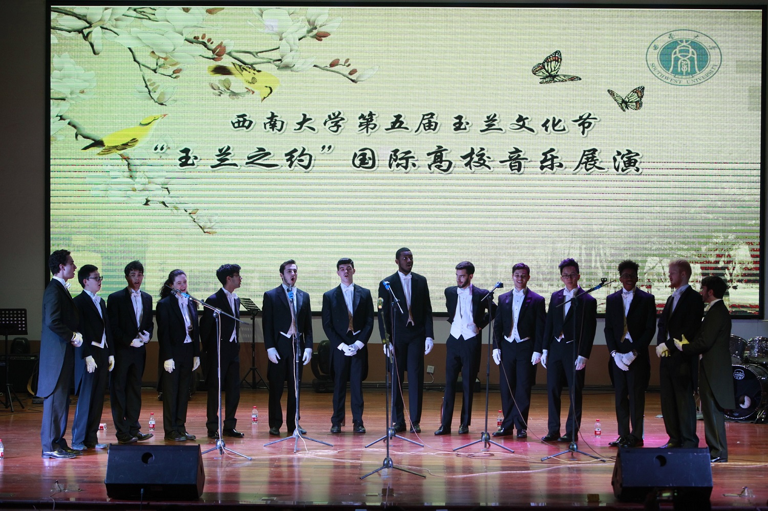 3月13日晚,“玉蘭之約”國際高校音樂展演在學校音樂學院演奏廳上演,這也是學校第五屆玉蘭文化節的系列活動之一。學校特別邀請到了耶魯大學“威芬普夫斯”無伴奏合唱團來校,與音樂學院聯袂演出。學校黨委副書記潘洵出席音樂會。表演者們精心準備了14支曲目,呈現了一場高水準的藝術盛宴,現場座無虛席,氣氛熱烈。