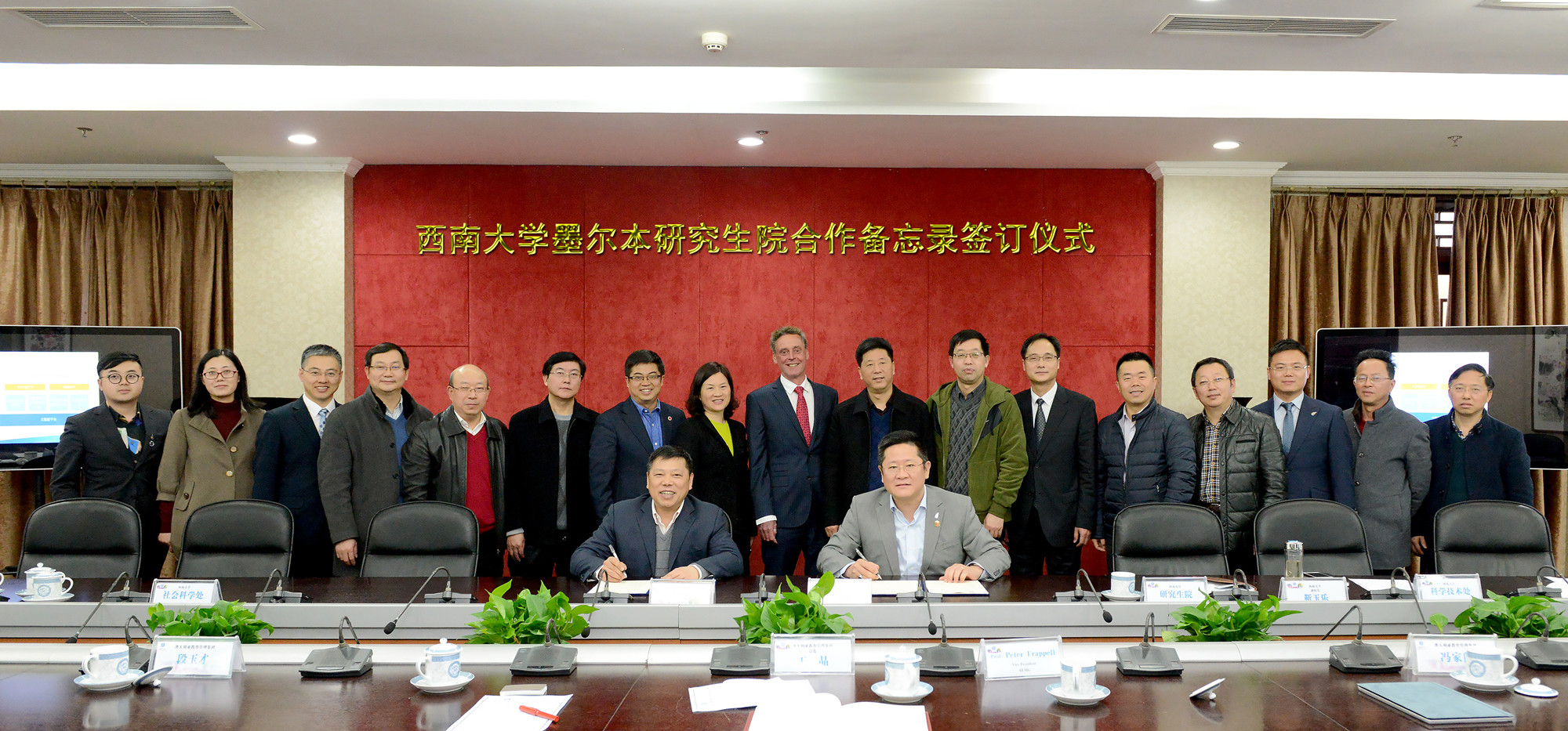 3月14日下午,西南大學墨爾本研究生院(MGI)工作推進會暨合作備忘錄簽約儀式在學校舉行。澳大利亞教育管理集團(AEMG)總裁李新慶、總監(jiān)王晶、副總裁(戰(zhàn)略與科研)Peter Frappell教授(塔斯馬尼亞大學前副校長),學校校長張衛(wèi)國、副校長靳玉樂,以及研究生院、科技處、社科處、國際處、對外聯(lián)絡部、教育學部、心理學部、計算機與信息科學學院/軟件學院、農學與生物科技學院、動物科技學院、藥學院/中醫(yī)藥學院、農業(yè)科學研究院、人工智能學院等相關單位主要負責人出席會議。