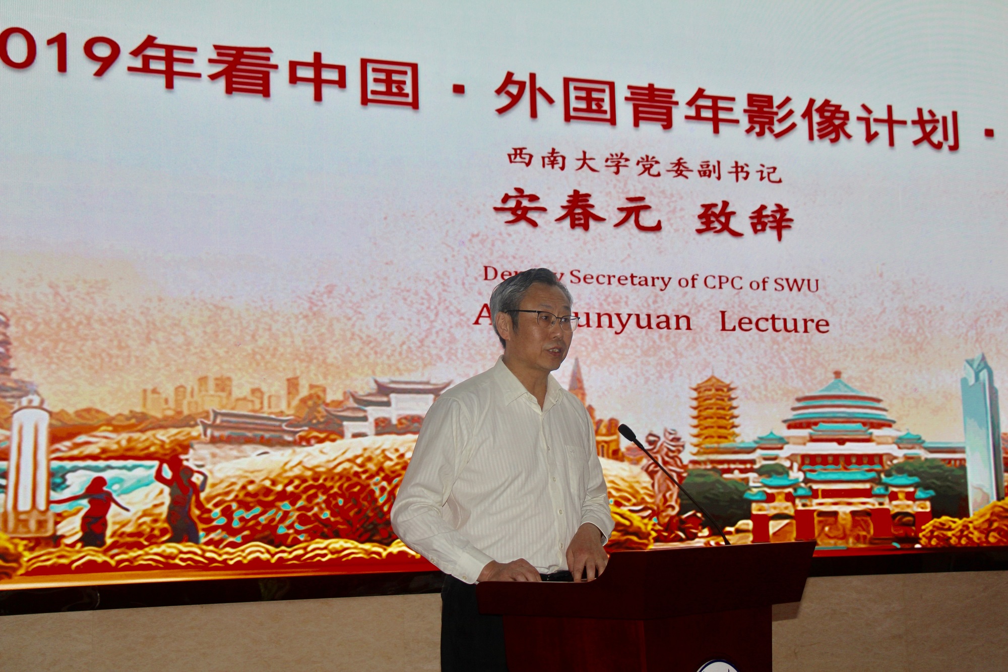 儀式伊始,安春元書記代表學校向來賓們表示歡迎。安書記指出,學校是教育部直屬,教育部、農業農村部、重慶市共建的重點綜合大學,是國家“雙一流”建設高校,他希望通過“看中國·外國青年影像計劃”項目的實施增進中國青年和其他國家青年的友誼,互學互鑒,共創美好未來。安書記預祝2019“看中國?外國青年影像計劃重慶行”取得圓滿成功。