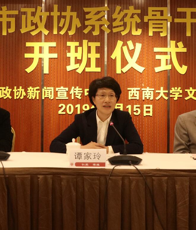 4月15日,2019年重慶市政協系統骨干通訊員培訓在學校開班,重慶市政協副主席譚家玲,西南大學副校長陳時見,北碚區政協主席周繼超,重慶市政協研究室副主任呂玲,西南大學文學院黨委書記黃杰、院長王本朝,重慶市政協新聞宣傳中心副主任彭世祥出席開班儀式。開班儀式由呂玲副主任主持,來自重慶市政協新聞宣傳中心及各區縣政協新聞部門負責人130余人參加開班儀式。