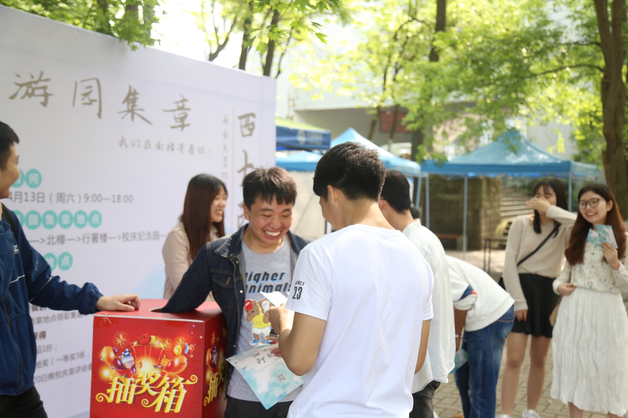 4月13日上午,“西大印記”系列活動之游園集章活動拉開序幕。此次活動分別在南樟、校慶紀念園、行署樓、石馬、北樟五個地方設置了集章點。參與集章活動的同學不僅可以游覽美麗的校園,還可以了解校史知識、贏取幸運大禮。活動形式新穎有趣,吸引了眾多師生和校友積極參與。