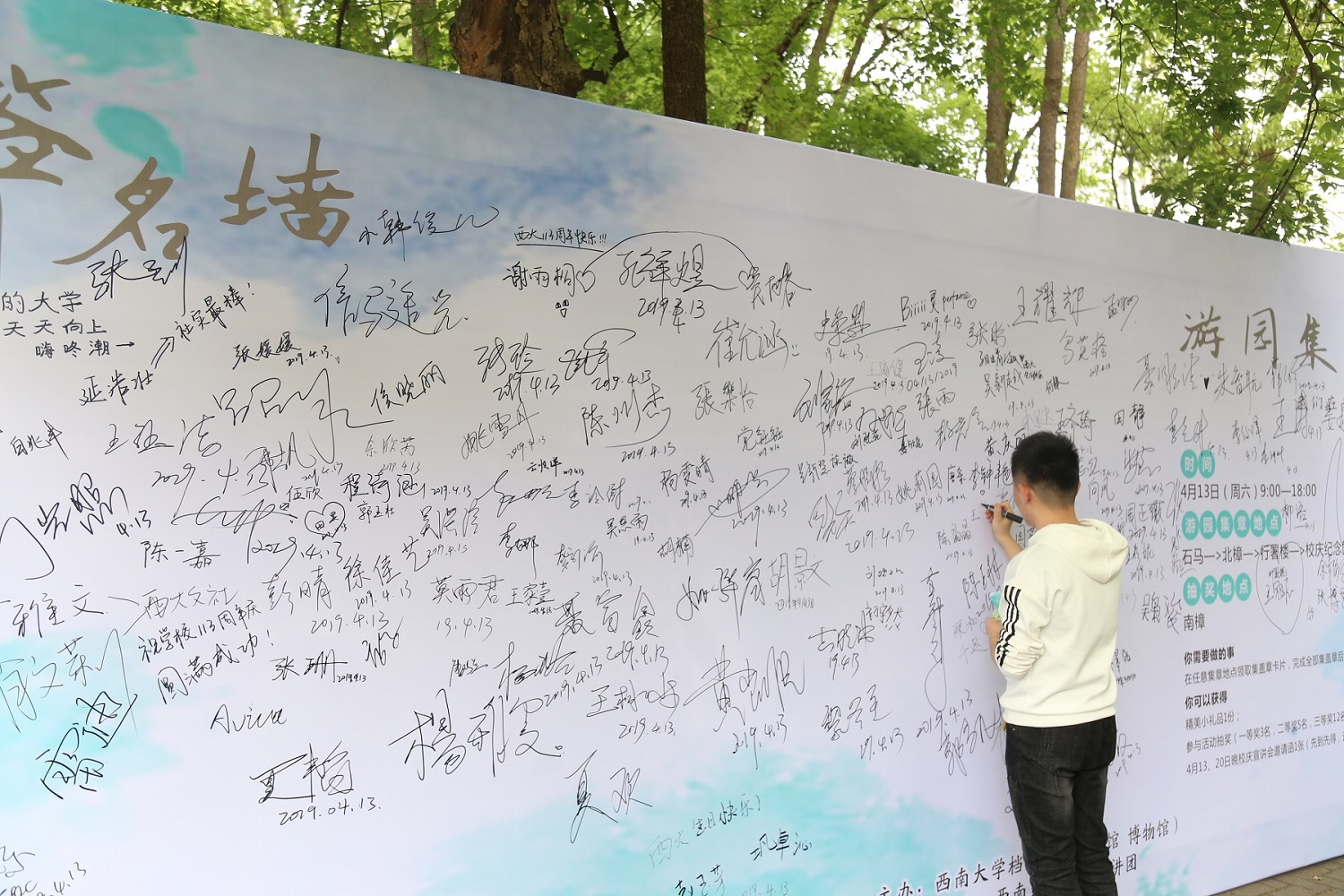 與此同時,“西大印記”系列活動之簽名寄語活動也在南樟林展開。眾多校內師生、已畢業校友和前來學校參觀的社會人士,紛紛在簽名墻上留下了對學校的美好祝福。