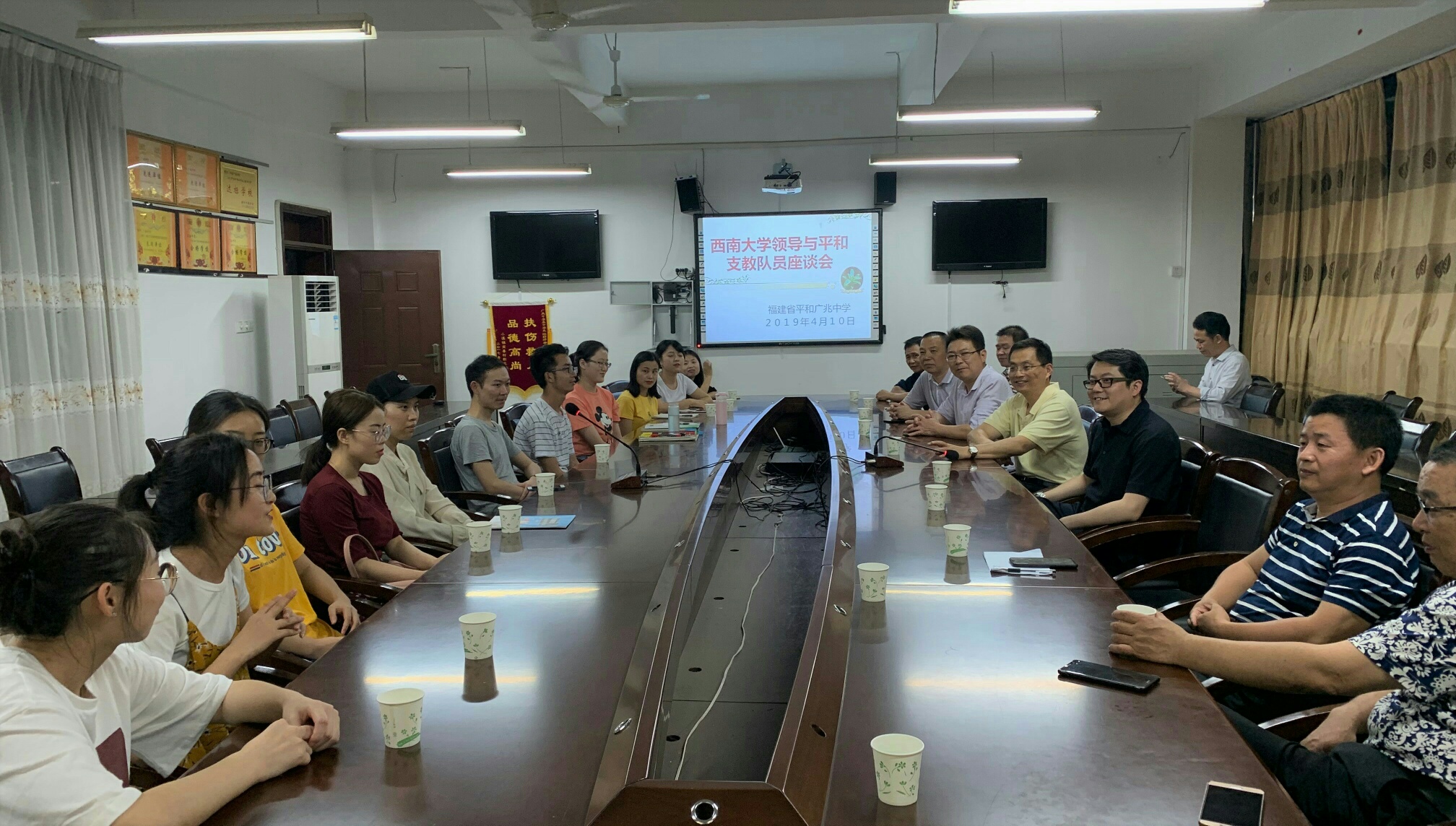 近日,學(xué)校黨委研究生工作部部長(zhǎng)尹曉東一行來(lái)到平和縣,親切看望指導(dǎo)第四期平和支教團(tuán)的21名隊(duì)員,與縣教育局、支教中學(xué)及支教隊(duì)員們召開交流座談會(huì),進(jìn)行實(shí)地調(diào)研,并在該縣廣兆中學(xué)舉行社會(huì)實(shí)踐基地授牌儀式。