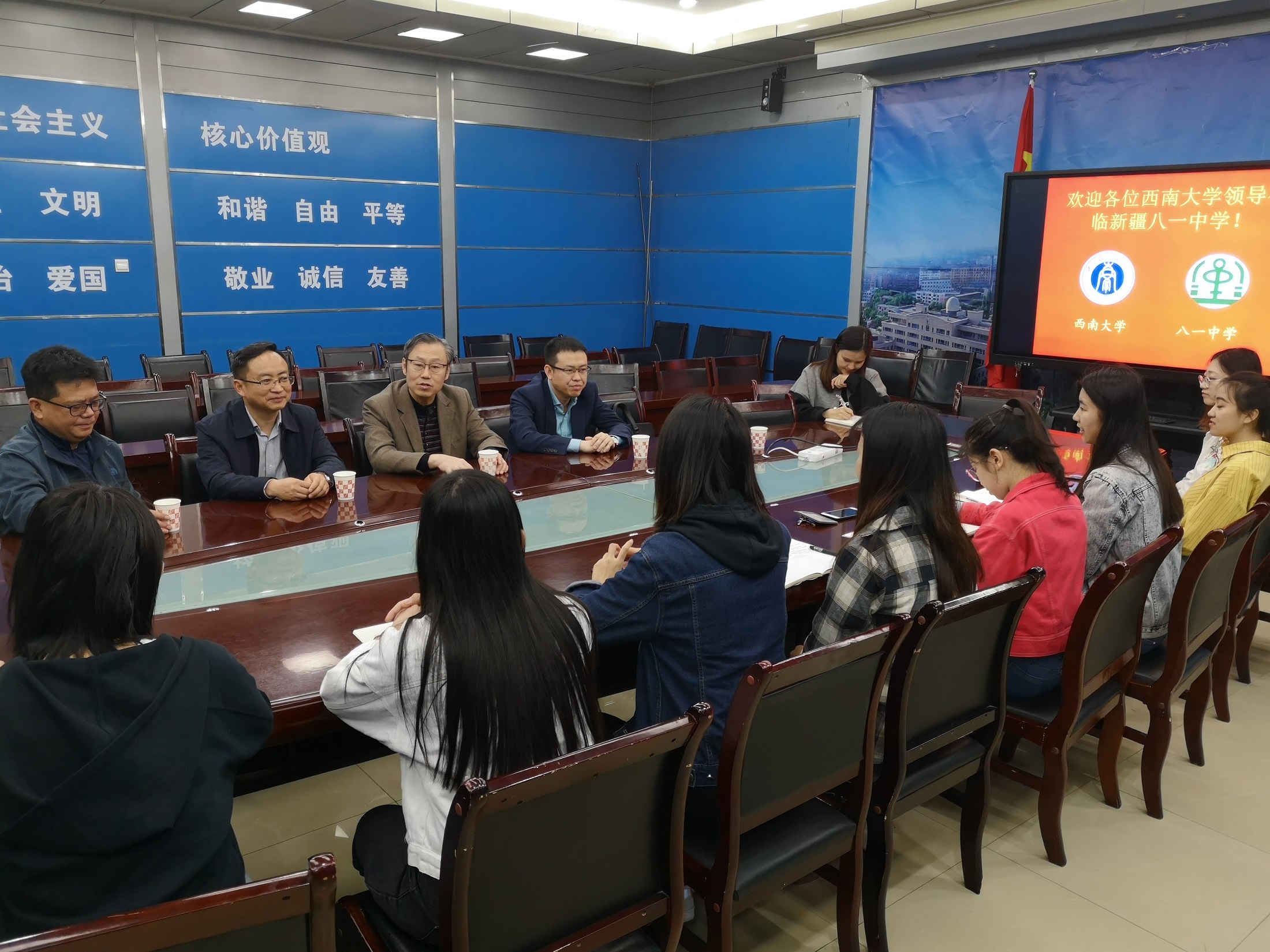 此外,安春元副書記一行還與在烏魯木齊八一中學(xué)實(shí)習(xí)的師范生和新疆應(yīng)用職業(yè)技術(shù)學(xué)院支教的研究生進(jìn)行了親切座談,詳細(xì)了解了同學(xué)們的工作和生活情況。安春元副書記表示,希望同學(xué)們認(rèn)真學(xué)習(xí)“胡楊精神”,明確肩負(fù)的任務(wù)和責(zé)任,不辜負(fù)學(xué)校期望,團(tuán)結(jié)協(xié)作,努力提高教育教學(xué)水平,充分展現(xiàn)西南大學(xué)學(xué)生的優(yōu)秀素質(zhì),圓滿完成工作任務(wù)。