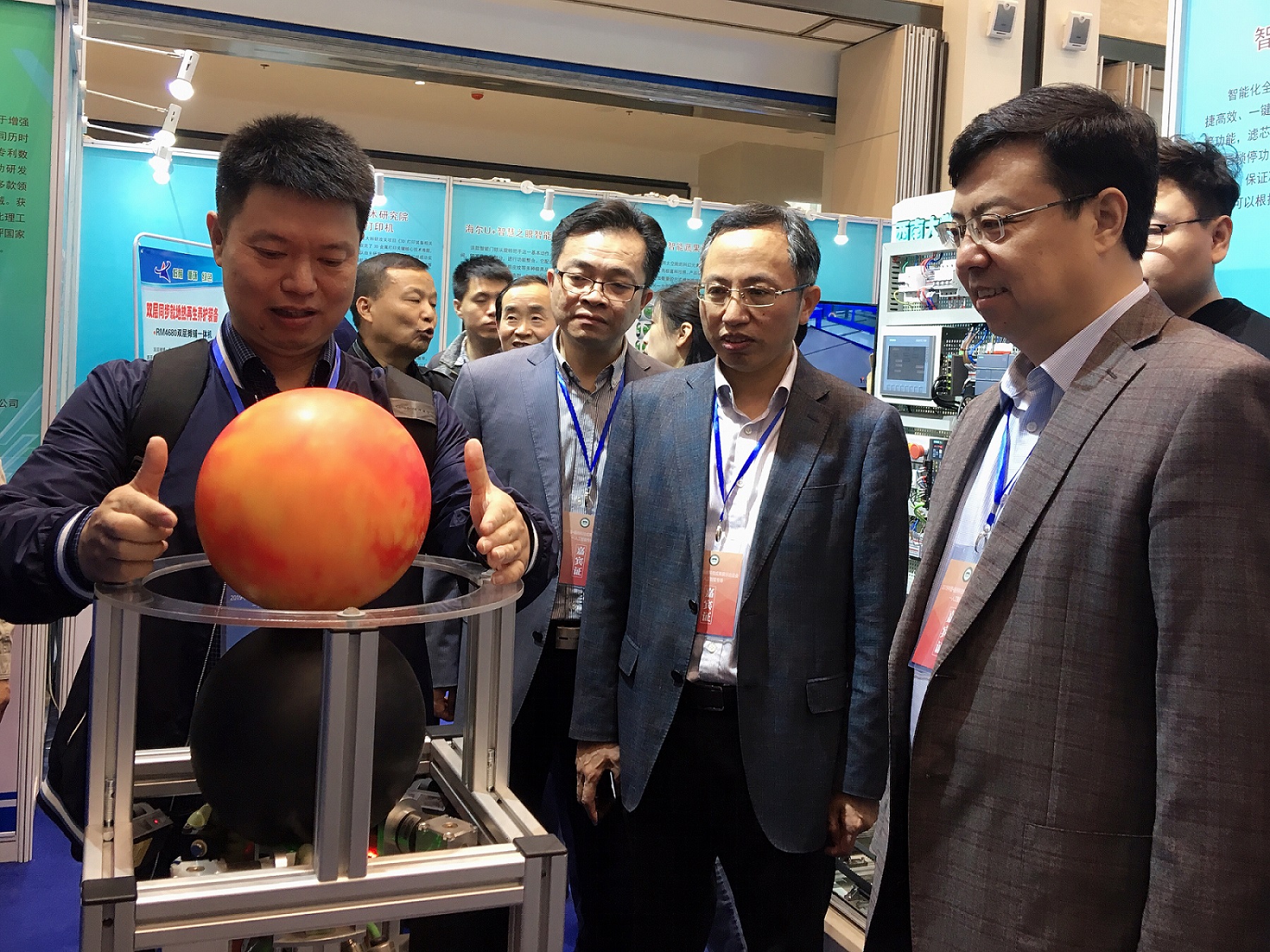 此次科洽會由科學技術部火炬中心、江蘇省科學技術廳、中科院南京分院、揚州市人民政府聯(lián)合舉辦,來自國內(nèi)相關高校、科研院所和AI領域相關企業(yè)參會,現(xiàn)場展示了200余項新一代人工智能科技成果。學校參展的ball on ball控制系統(tǒng)、工業(yè)級倒立擺、三維機械抓手、青少年人工智能教育等項目亮相科洽會,獲得與會人員的關注。