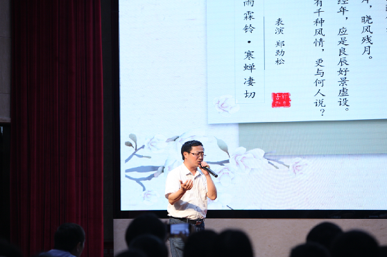 校工會副主席、新聞傳媒學院文化與傳播研究中心副主任鄭勁松老師現場清唱了他自己原創編曲的宋詞《雨霖鈴·寒蟬凄切》,令人耳目一新。