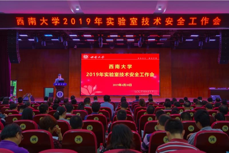 為全面貫徹落實教育部和重慶市實驗室安全工作有關要求,4月30日上午,學校召開2019年實驗室技術安全工作會。學校黨委書記李旭鋒、副校長王進軍出席會議,實驗室技術安全工作領導小組成員單位負責人、自然科學類與人文社會科學及藝體類二級單位黨政負責人、實驗室安全分管領導、實驗室主任與副主任、安全員、榮昌校區管委會黨政負責人近200人參加會議,會議由王進軍副校長主持。