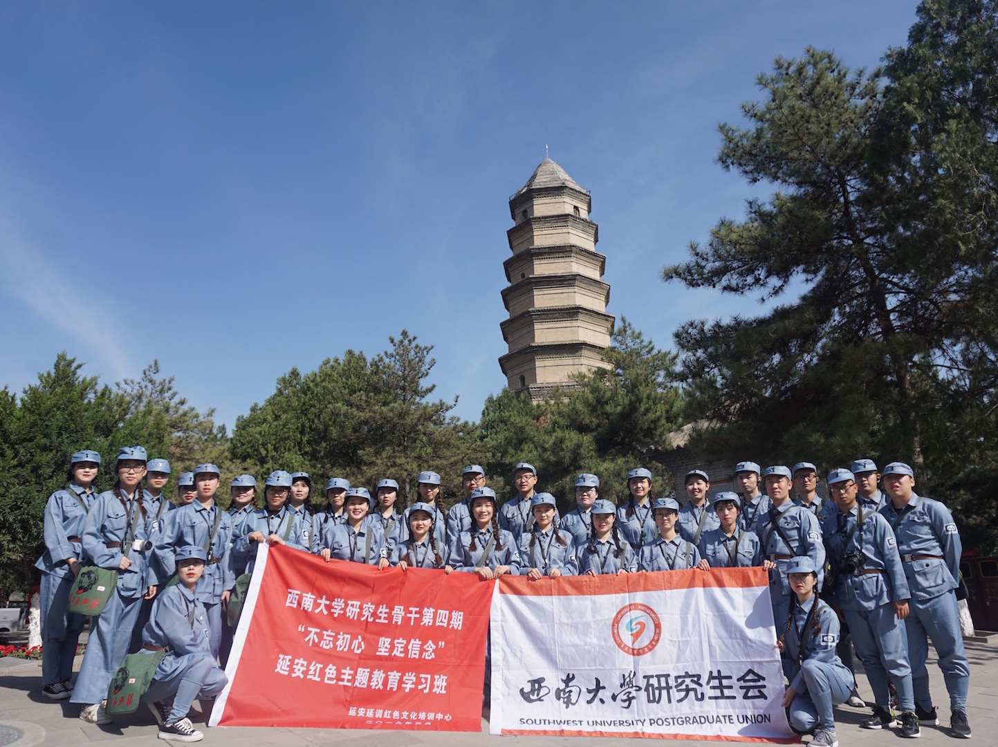 恰逢五四運動百年,新中國成立70周年之際,學校黨委研究生工作部組織30名研究生骨干前往陜西延安,開展“不忘初心 堅定信念”紅色主題教育學習活動。重溫革命故事,學習延安精神,傳承紅色基因。