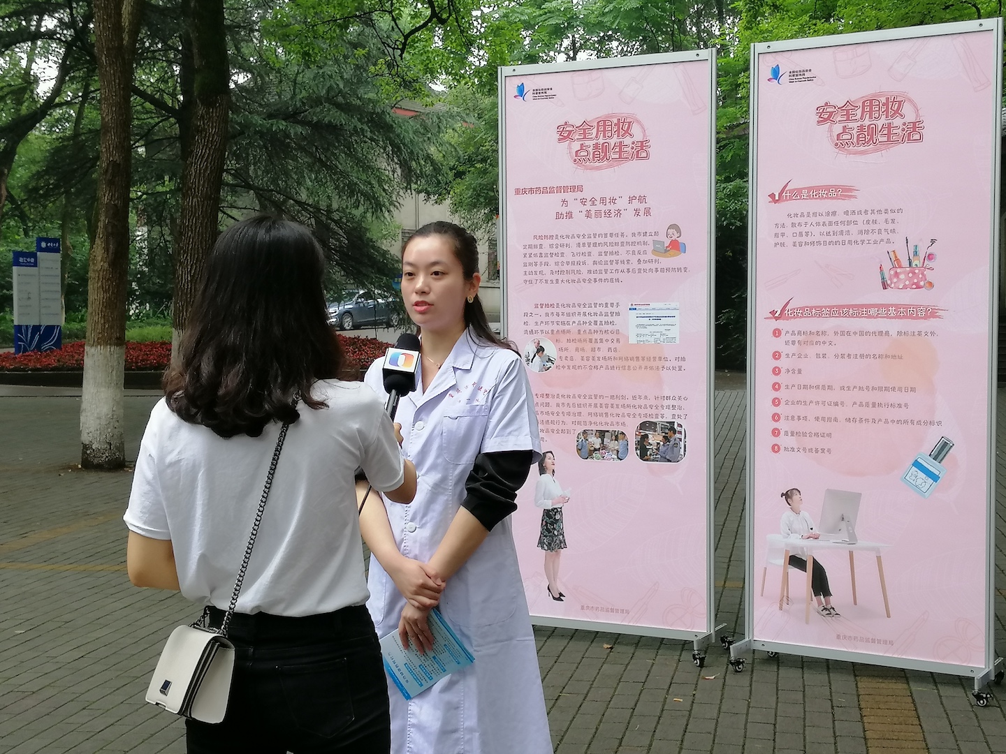 5月25日,“化妝品安全科普進校園”現(xiàn)場咨詢活動在學校北樟樹林成功舉辦。重慶市藥品不良反應監(jiān)測中心的工作人員發(fā)放化妝品知識宣傳手冊等科普資料,重慶市中醫(yī)院皮膚科醫(yī)生現(xiàn)場解答關(guān)于化妝品和皮膚問題的咨詢,重慶市北碚區(qū)市場監(jiān)督管理局工作人員現(xiàn)場接受關(guān)于化妝品監(jiān)管的相關(guān)咨詢,吸引眾多師生前來咨詢。到場師生紛紛表示,此次活動是一個很好的平臺,指導大家合理預期化妝品功效,提升了自主選購化妝品鑒別力,增進了對化妝品安全的理解和認知。