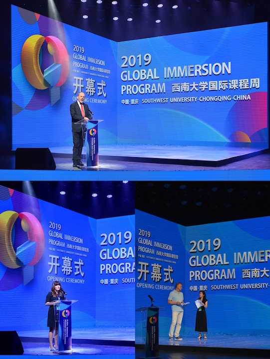 7月7日晚,學校首屆“國際課程周”開幕式在光大禮堂舉行。來自劍橋大學、牛津大學、曼徹斯特大學、耶魯大學、普渡大學、維多利亞大學、西蒙弗雷澤大學、根特大學、赫爾辛基大學、米蘭大學、華沙大學、薩格勒布大學、圖盧茲大學等15個國家和地區55所高水平大學及科研機構的85位教授,與近千名學校師生一起參加、見證學校國際化辦學進程中這一具有里程碑意義的盛會。學校黨委書記李旭鋒、校長張衛國、黨委副書記潘洵、副校長陳時見、副校長王進軍,以及學校有關職能部門、二級教學科研單位負責人出席開幕式。
