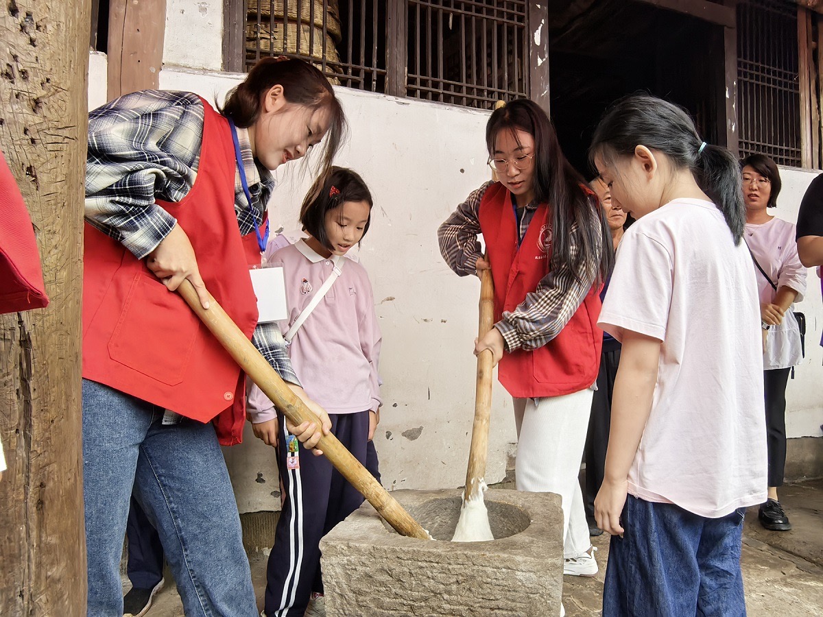 活動(dòng)中,學(xué)生們以民為師,向村民們學(xué)習(xí)打糍粑、磨豆花等傳統(tǒng)技藝,并進(jìn)行農(nóng)事體驗(yàn)、學(xué)習(xí)農(nóng)耕知識(shí)。“院子里大多都是老年人,這樣的活動(dòng)多來(lái)搞搞,我們這里熱鬧些。”村民們說(shuō)。