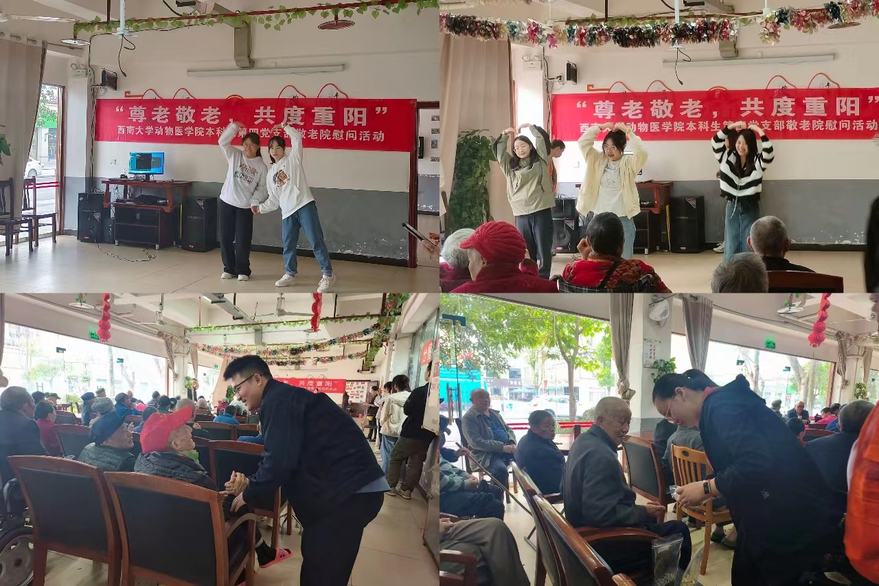 為深入學(xué)習(xí)貫徹習(xí)近平新時代中國特色社會主義思想,進(jìn)一步深刻領(lǐng)會黨的二十大精神,弘揚(yáng)中華民族敬老、愛老、助老的傳統(tǒng)美德。2023年10月22日,動物醫(yī)學(xué)院本科生第四黨支部黨員同志和積極分子代表在重慶市榮昌區(qū)昌元昌州街道敬老院開展了以“尊老敬老,共度重陽”為主題的敬老院慰問活動。