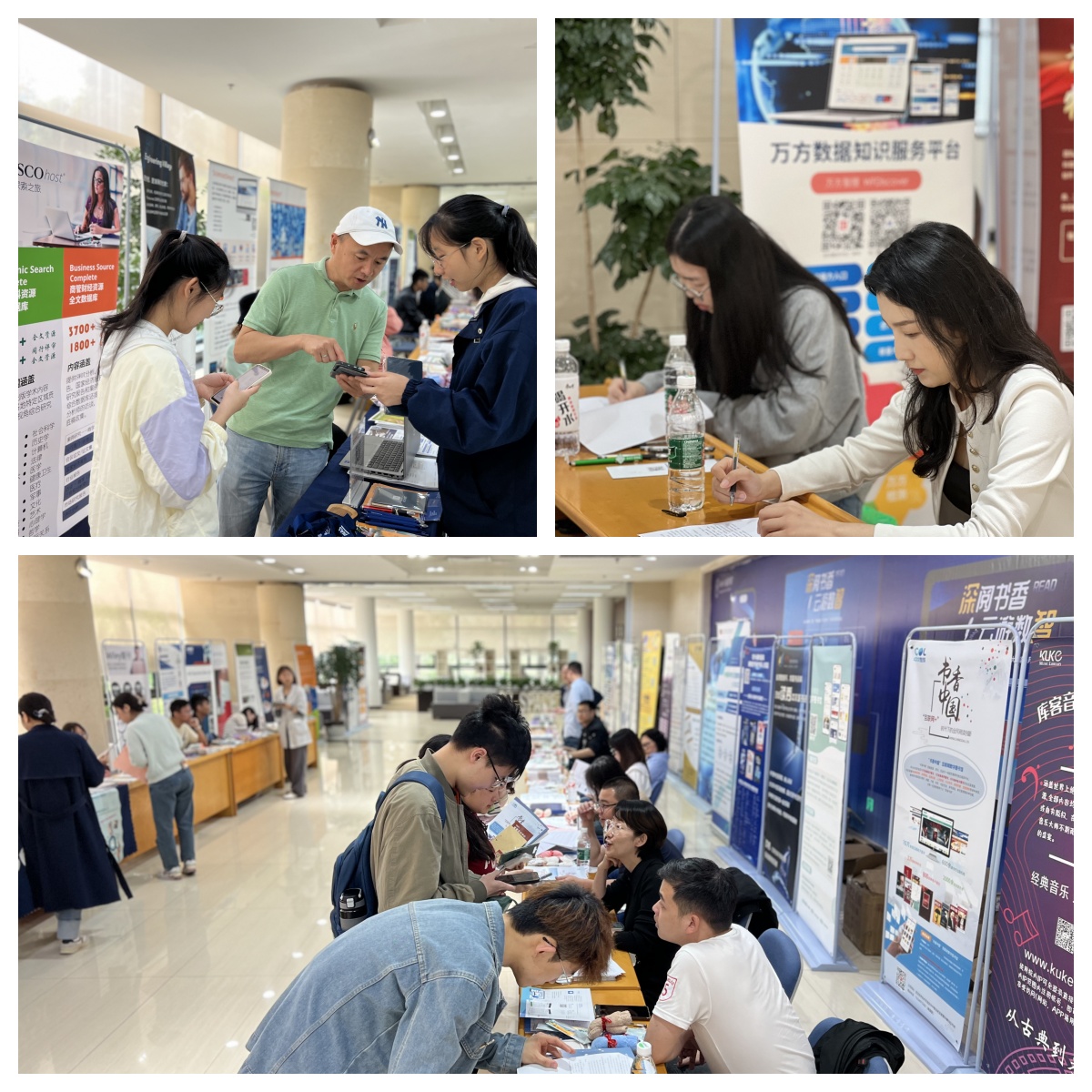 活動(dòng)吸引了多家中外文數(shù)字資源商的參與,他們通過宣傳海報(bào)、宣傳手冊及到場宣講等方式展示了圖書館購買的數(shù)字資源,為師生提供了一個(gè)近距離了解和體驗(yàn)數(shù)字資源的機(jī)會。活動(dòng)現(xiàn)場互動(dòng)頻繁,師生們對數(shù)字資源表現(xiàn)出了濃厚的興趣,他們積極與資源商代表交流,咨詢使用過程中碰到的疑問。