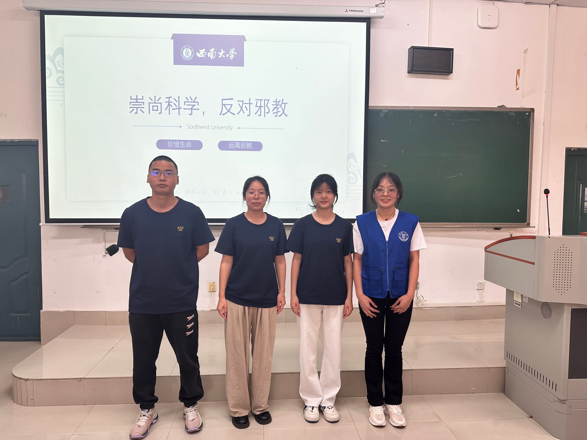 此外,學(xué)校玉蘭衛(wèi)士班宣講團成員還走進學(xué)院、班級、寢室等,開展了為期一個月的“崇尚科學(xué) 防范邪教”主題宣講,覆蓋多個學(xué)院,30余個班級,重點介紹了邪教的本質(zhì)及危害、邪教騙人的手段和識別方法,并通過真實案例警示大家自覺遠離邪教、抵制邪教,筑牢國家安全意識;學(xué)校科協(xié)圍繞平安校園建設(shè),聚焦揭批邪教組織本質(zhì)及危害、普及防邪反邪知識等,牽頭組織開展反邪教原創(chuàng)作品創(chuàng)作、征集活動,師生廣泛參與,共征集文字、圖片、音視頻等六類作品共30余件。